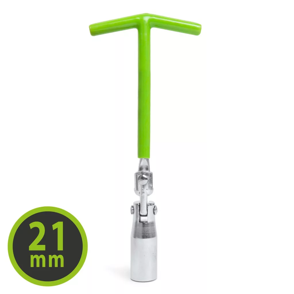Gyújtógyertya kiszedésére használható kulcs, amely minden 21 mm átmérőjű gyertyához használható. Gumírozott nyele stabil fogást biztosít. Az alsó csukló rész nehezen hozzáférhető helyeken történő használatot is lehetővé tesz.