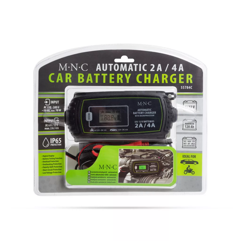 Autós akkumulátor töltő - 230 V - 2 A / 4 A - automata