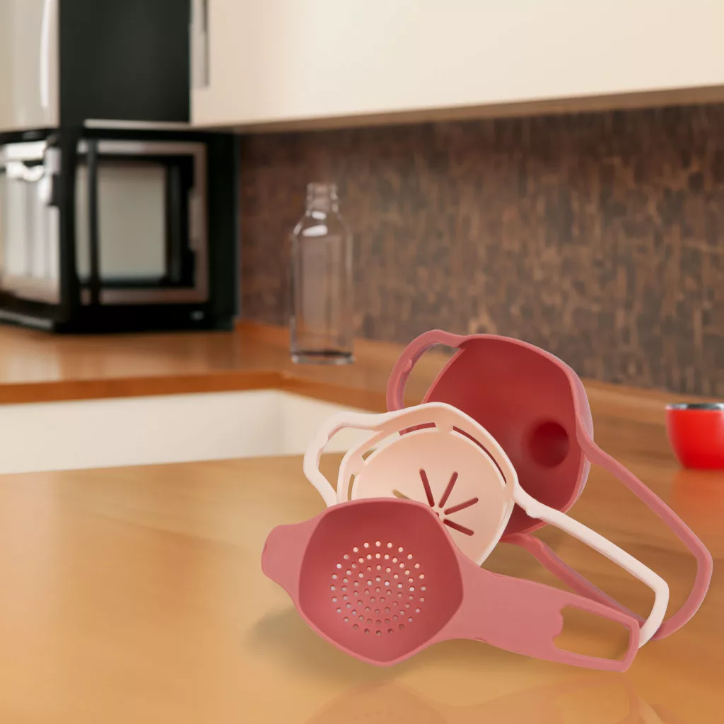 Praktikus konyhai készlet, amely 3 eszközből áll. A legkisebb eszköz egy teaszűrő, amely segítségével egyszerűen önteti át a forró vizet a teafüvön és készítheti el italát. A középső méretű eszköz megkönnyíti a tojás, sárga és a fehér részének szétválasztását. A legnagyobb eszköz pedig egy tölcsér, amely akár a két másik eszközzel kombinálva is használható. Az egymásba pattintható tölcséralakú kialakítás lehetővé teszi a helytakarékos tárolást.