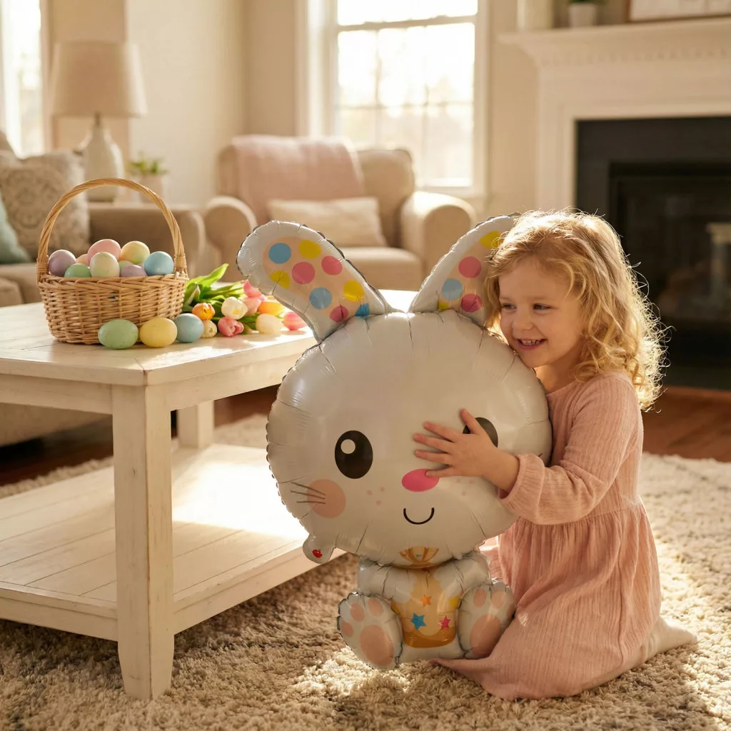 Tegye még vidámabbá a húsvéti ünneplést ezzel a bájos nyuszis lufival! A lufi különleges formájának és aranyos mintájának köszönhetően remek dekoráció bármely ünnepi helyszínen. Helium minőségű, így levegővel vagy héliummal is könnyedén felfújható. Ideális választás otthoni díszítéshez, bulikhoz, gyermekprogramokhoz vagy ajándék kiegészítőjeként.