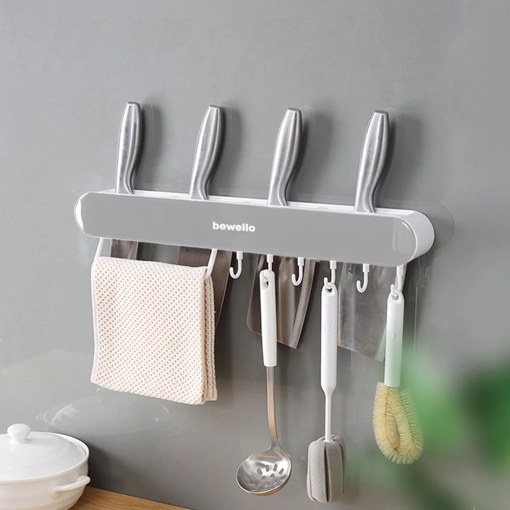 Erős öntapadós felülettel rendelkező konyhai, fürdőszobai tároló, amely alkalmas különböző méretű kések, konyhai eszközök rendezett tárolására. A konzol bármilyen csempére, üvegre felragasztható. A letisztult design minden konyha, fürdőszoba enteriőrben jól mutat. Ideális lehet kések, csipeszek, merőkanalak tárolásán kívül, fürdőszobai eszközök rendszerezésére is, legyen szó törölközőről, köntösről vagy akár fürdőpamacsról. Egyszerűen telepíthető: Tisztítsa meg és zsírtalanítsa a felületet, ragassza a megfelelő helyre a rögzítőfóliát, majd felülről lefelé helyezze rá a konzolt.