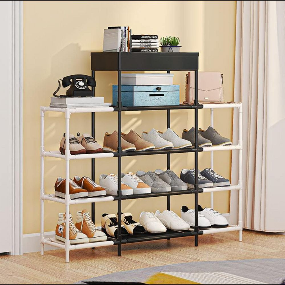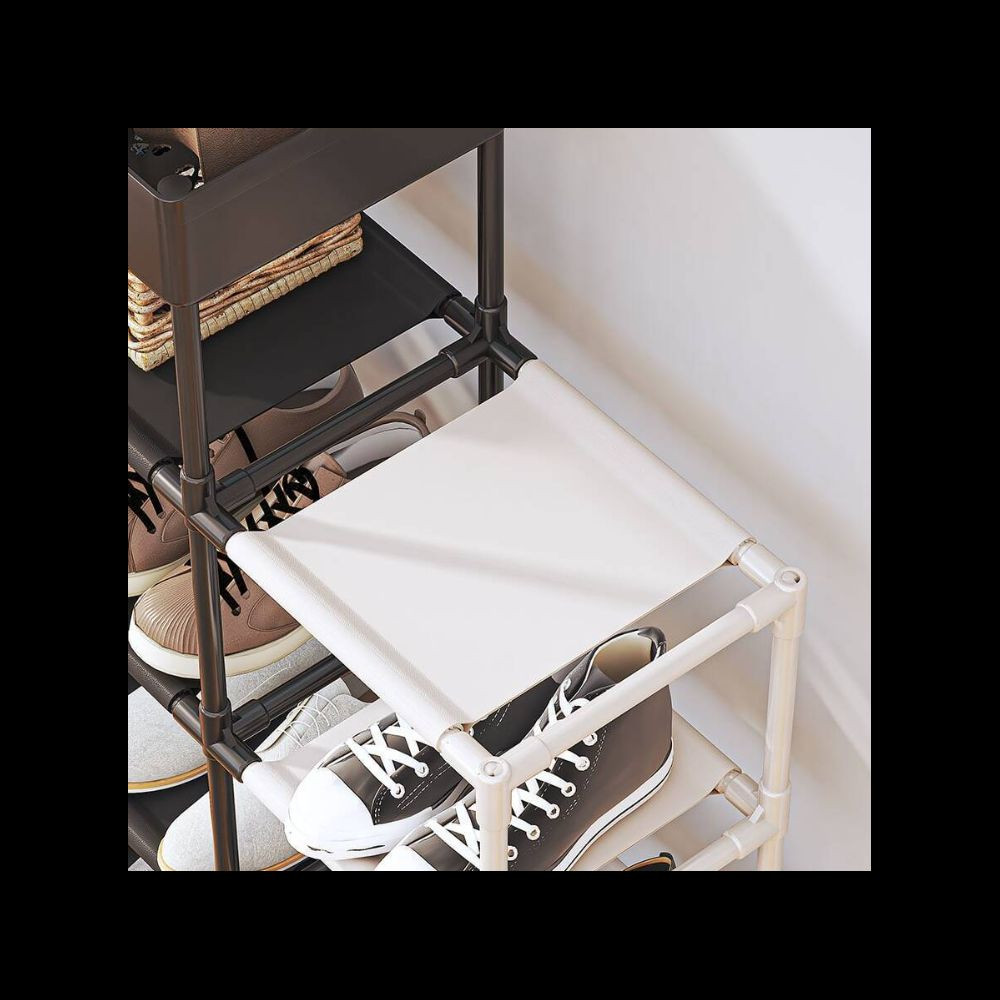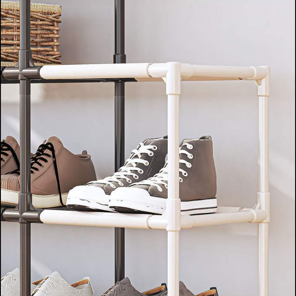 Vége a cipők összevissza pakolásának és a rendetlenségnek! Az egyszerűen átalakítható cipőtároló állvány megoldást kínál a cipőkollekciójának rendezésére, tárolására és könnyű hozzáférésére. A tartórendszer 12 pár cipő tárolására alkalmas, és számos funkcióval rendelkezik a mindennapi élet megkönnyítésére. A tartóállvány négy szintre bontható, ezáltal egyszerűen szabályozható a cipőtartó magassága. Levehető polcokkal rendelkezik, amelyek lehetővé teszik, hogy a cipőket látótávolságban tartsa, így gyorsan és könnyen megtalálja a megfelelő párt bármilyen ruhához, alkalomhoz. A cipőtartó könnyen átalakítható, így testre szabhatja azt a saját igényei szerint. Az állvány erős fémrudakkal (rozsdamentes) és kiváló minőségű műanyagból készült oldalpanelekkel rendelkezik, ami biztosítja a stabilitást és a tartósságot.