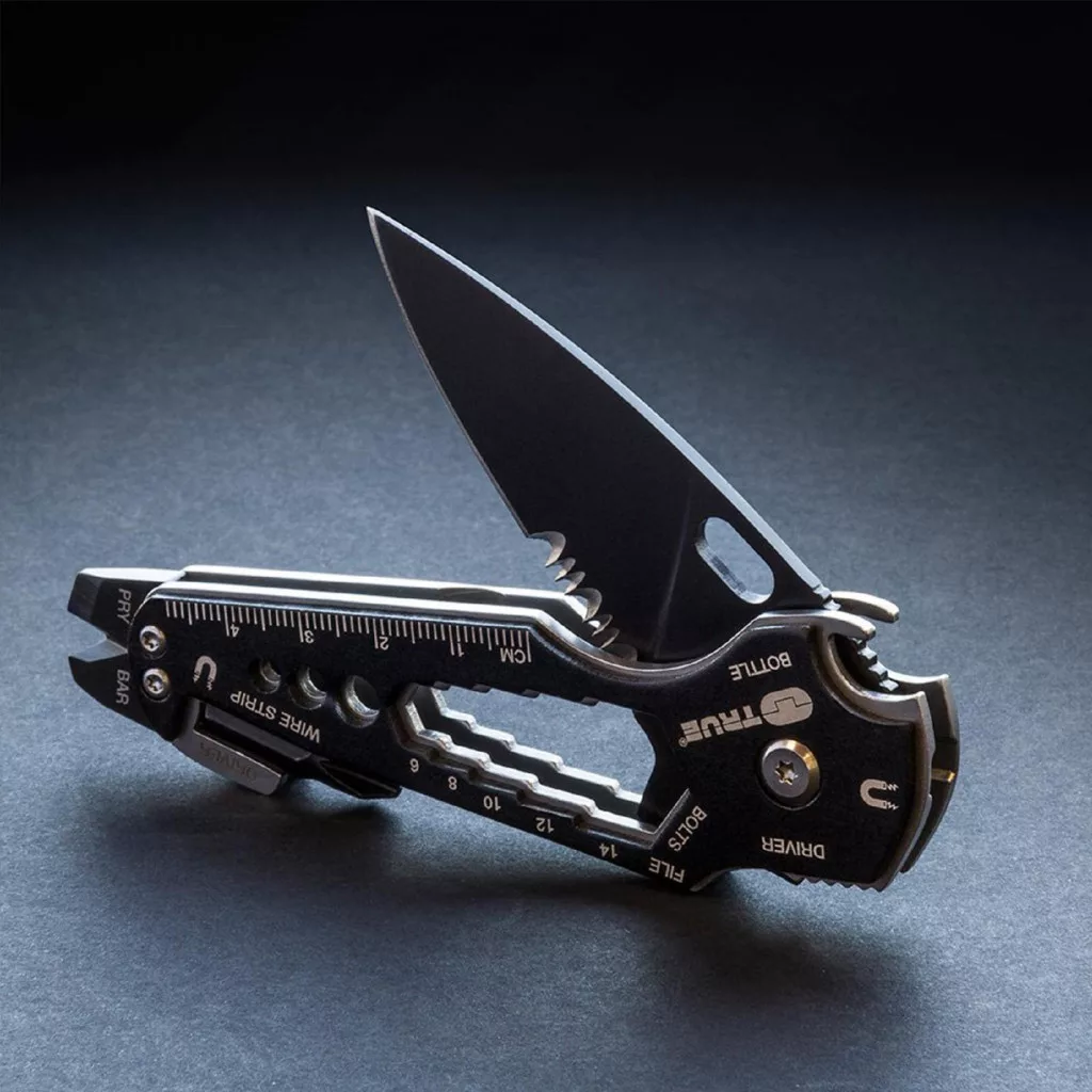 True Utility Smartknife+, TU6869, 15 in 1, mágneses bitfej tartó, kábelcsupaszoló, homokfúvott rozsdamentes acél, 5,5 cm penge