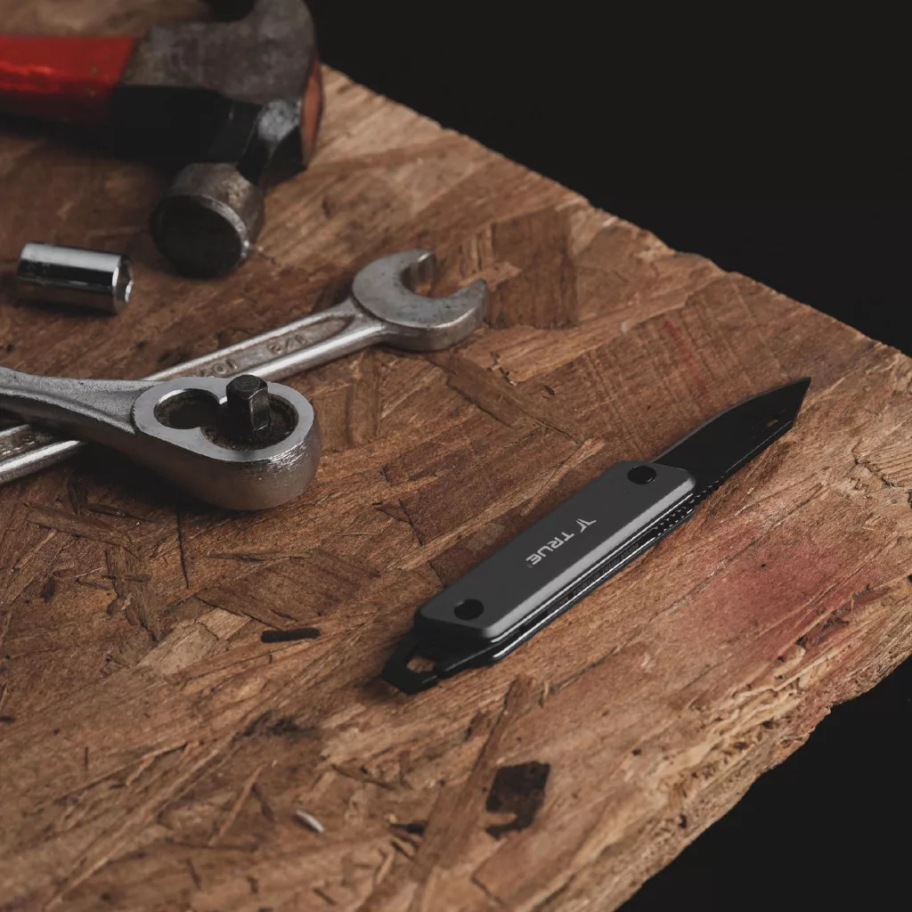 True Utility Modern Keychain Knife, TU7060N, 4 cm rozsdamentes acél penge, multifunkcionális, eloxált alumínium markolat