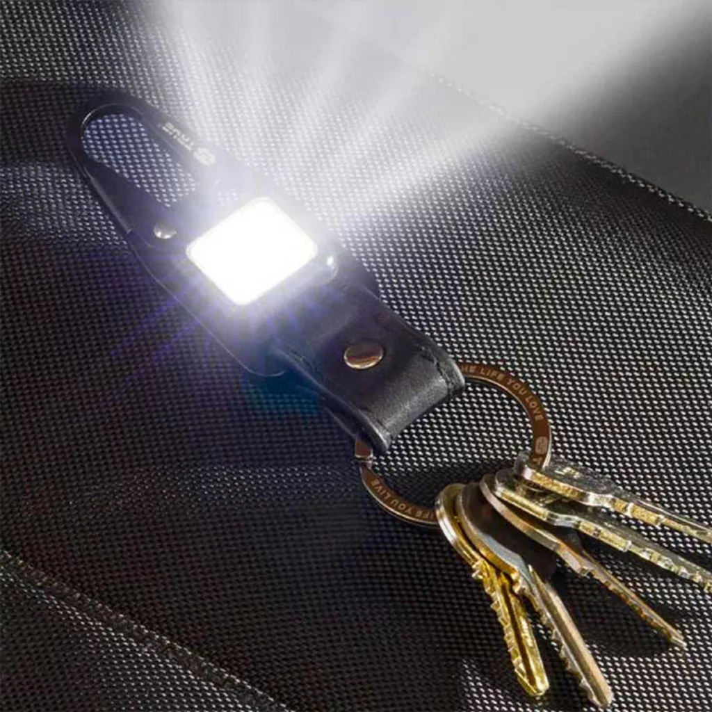 True Utility Cliplite, TU918, kulcstartó karabiner, tölthető lámpa, 4 funkció, 47 lm COB LED, Li-ion, marhabőr szíj, rozsdamentes acélváz