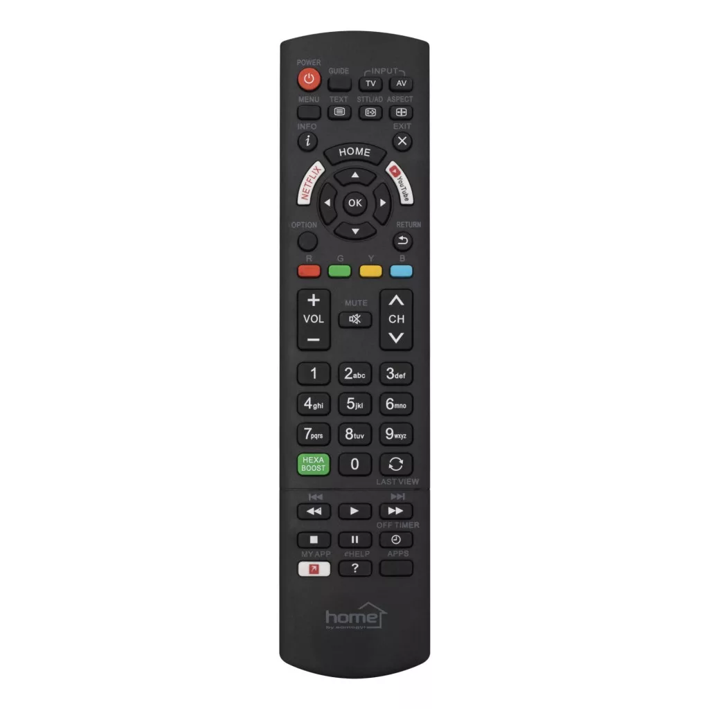 A Home URC PAN távirányító kifejezetten Panasonic smart TV készülékekhez készült, hogy a televíziózás kényelmesebb és stresszmentes legyen. Az előre kódolt rendszernek köszönhetően az eszköz azonnal használatra kész, így nem kell időt töltenie bonyolult beállításokkal. Mindössze két darab AA elemre van szükség (nem tartozék), és a távirányító máris készen áll a használatra.
