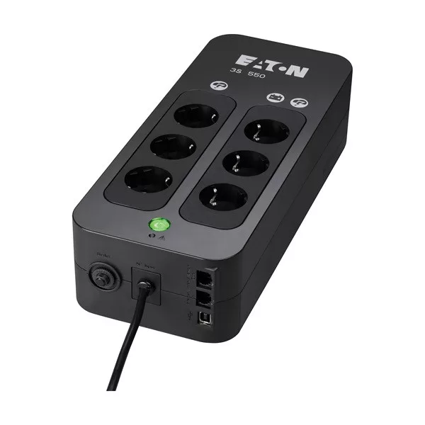 EATON UPS 3S (3+3 Schuko) 550VA (330 W) OFFLINE szünetmentes tápegység, torony - USB interfész felügyeleti szoftverrel