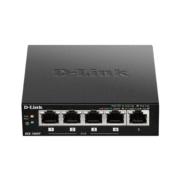 DGS-1005P 5-Port Gigabit Switch with 4 PoE Ports