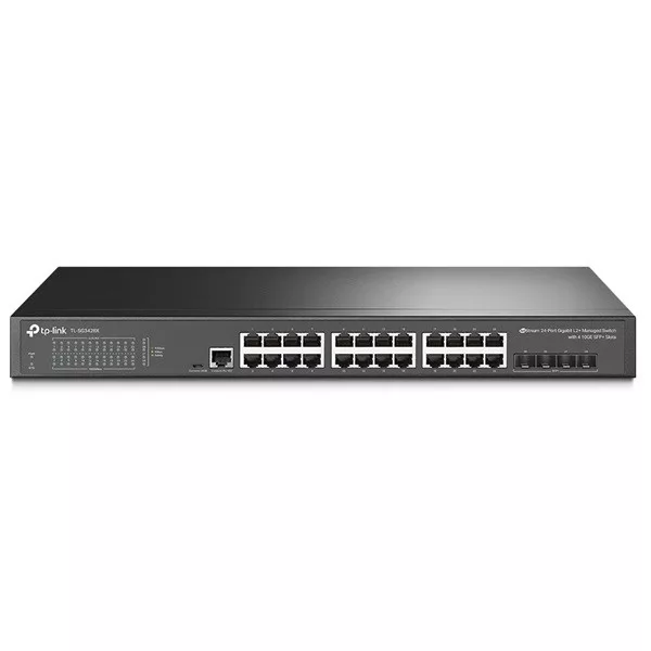 TP-LINK Switch 24x1000Mbps + 4x10G SFP+ + 2xkonzol port, Menedzselhető, SG3428X