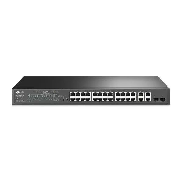 TP-LINK Switch 24x100Mbps (24xPOE) + 4x1000Mbps + 2xGigabit SFP, Menedzselhető, SL2428P