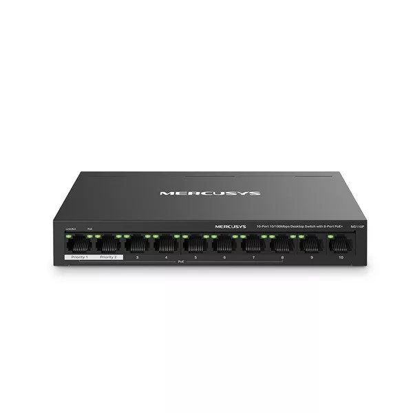 • 10-Port 10/100Mbps Desktop Switch with 8-Port PoE+ (MS110P)
