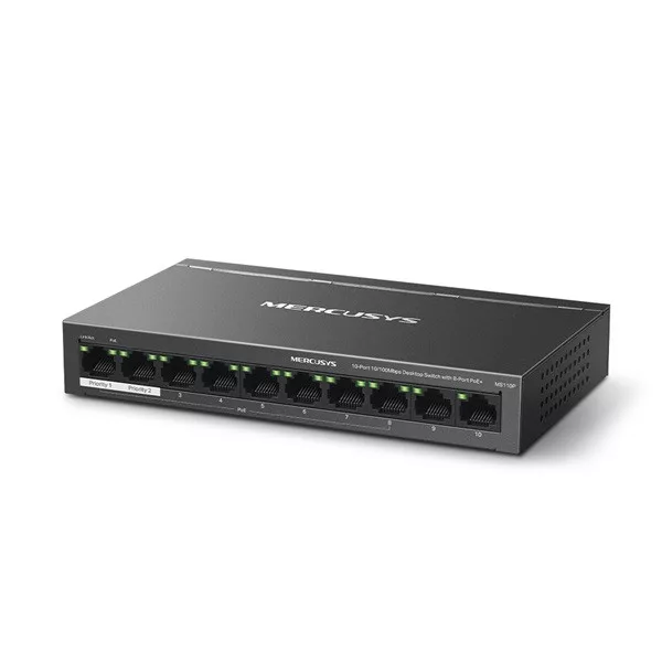 MERCUSYS Switch 10x100Mbps(8xPOE+), Fémházas Asztali, MS110P