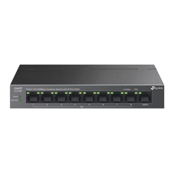 TP-LINK Switch 9x100Mbps (8xPOE+) Fémházas Asztali, LS109P