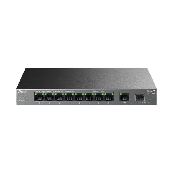 TP-LINK Switch 10x1000Mbps (8xPOE+) Fémházas Asztali, LS1210GP