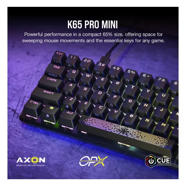 CORSAIR Vezetékes Billentyűzet Gaming, K65 PRO MINI RGB 65%, Optical-Mechanical, US, szürke
