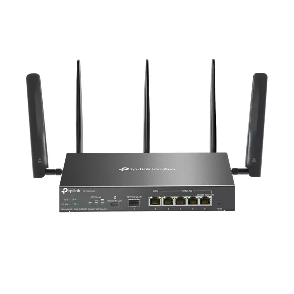 TP-LINK Vezetékes Omada AX3000 VPN Router 1xWAN(1000Mbps) + 4xLAN(1000Mbps) + 1xSFP + 1xSIM, ER706W-4G