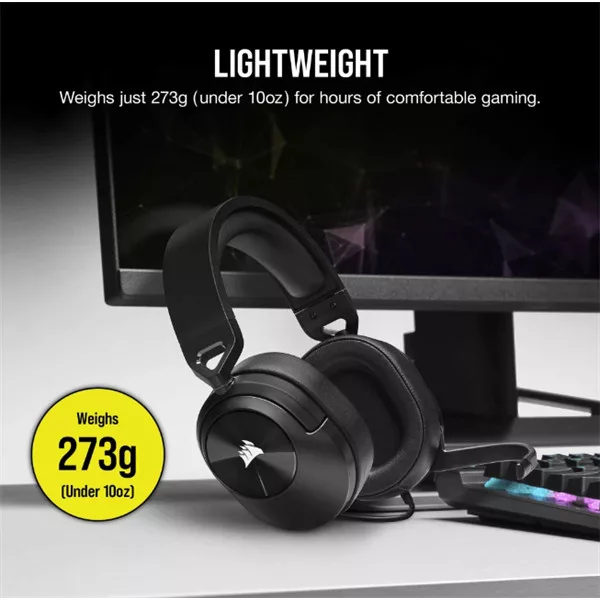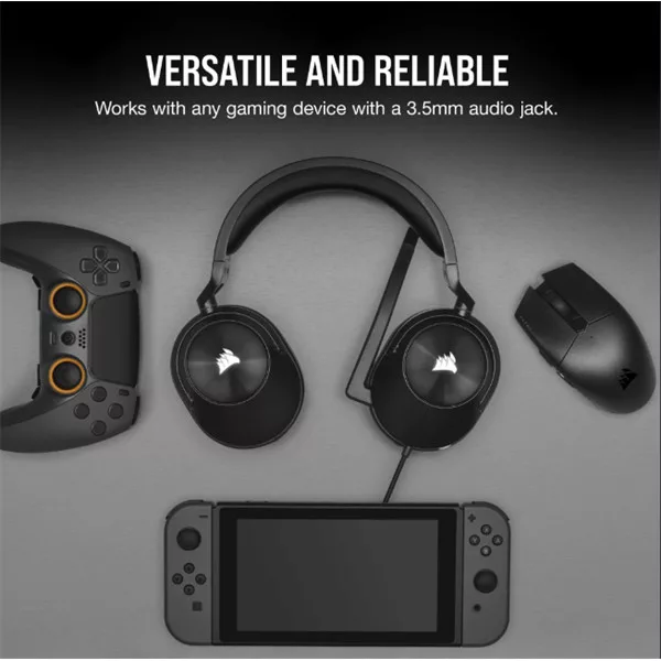 CORSAIR Vezetékes Headset, HS55 Gaming, Ultrakönnyű, Jack dugós, fekete
