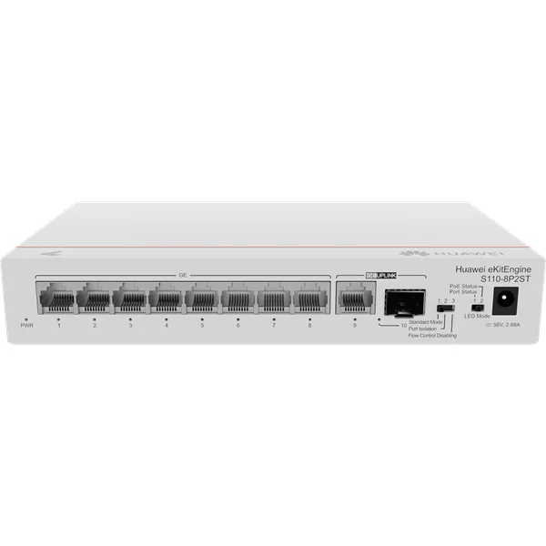 Huawei eKit Switch 8x1000Mbps (124W POE+) + 1x1000Mbps Uplink + 1x1GE (SFP), Nem menedzselhető, Asztali - S110-8P2ST