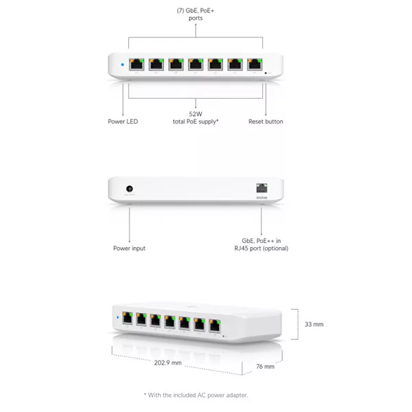 UBiQUiTi Ultra Switch 8x1000Mbps (7xPOE+ 60W), Menedzselhető, Asztali - USW-Ultra-60W