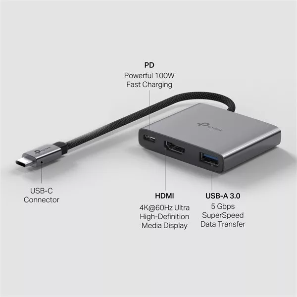 TP-LINK USB Type-C HUB 3 portos 1xHDMI + 1xPD 100W + 1xUSB(5Gpbs), UH3020C