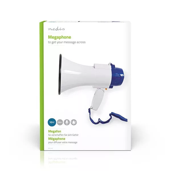 Juttassa el üzenetét nagy közönséghez ezzel a beépített szirénával rendelkező, kompakt Nedis megafonnal. Hordozható kialakításnak köszönhetően hangja meglepően messze, akár 250 méterre is elhallatszik. A 10 másodperces felvételi funkció révén nem kell újra és újra ugyanazt az üzenetet ismételgetnie.