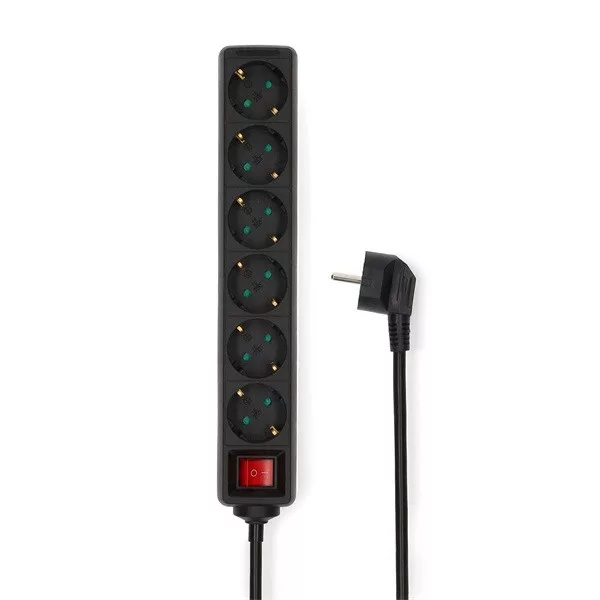 Nedis ESOC650F2BK 6 aljzatos kapcsolós (6-os) elosztó, 5 m, 3680 W, 16 A
