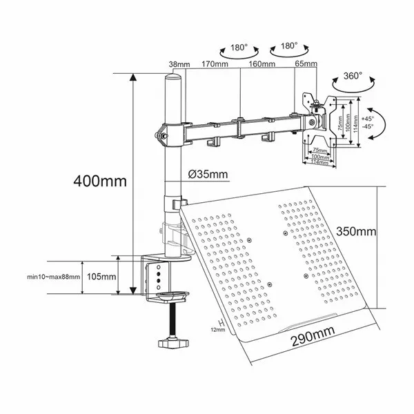 Nedis MMSISNB110BK asztali monitor tartó konzol és laptop állvány | 15-32" | 75x75 / 100x100