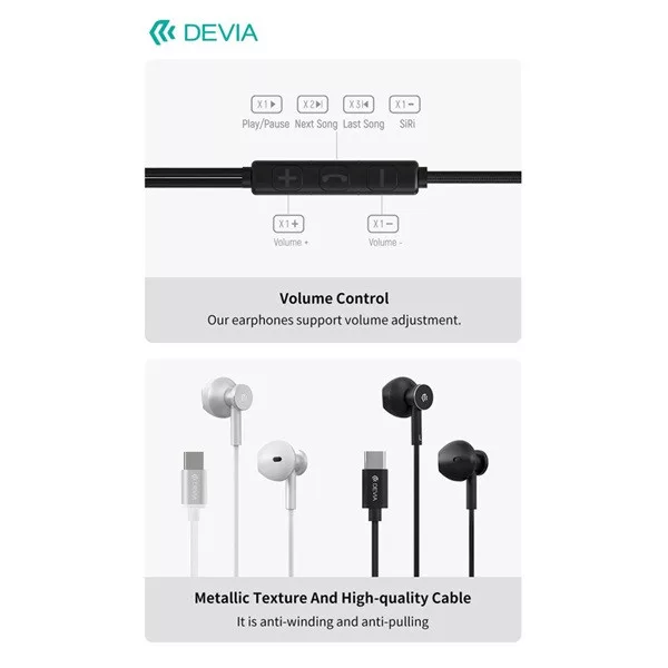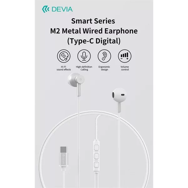 Devia Smart Series M2 Metal In-Ear sztereó fülhallgató - USB-C (Type-C), fekete
