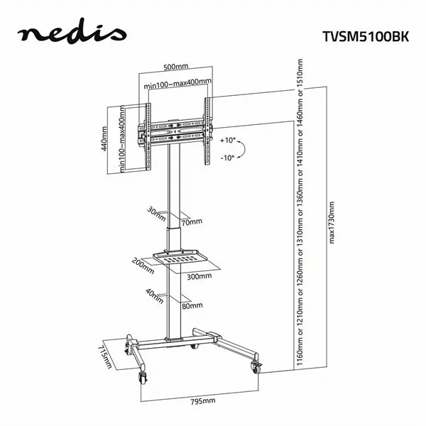 Nedis TVSM5100BK kerekes gurulós LCD TV/Monitor állvány (tartó konzol), 32"-55", szabadon álló, 35kg