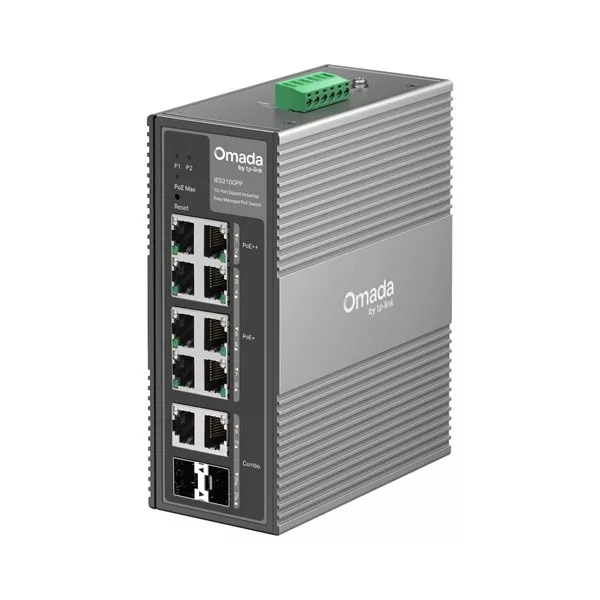 TP-LINK Switch Ipari 6x1000Mbps(POE+) + 2x1000Mbps(POE++) + 2xGigabit kombó SFP Fémházas, IES210GPP