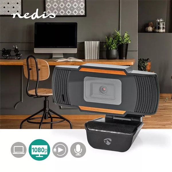 Nedis WCAM100BK (webcam) webkamera 1920x1080 full Hd, 30fps, sztereo mikrofon, lencsevédő