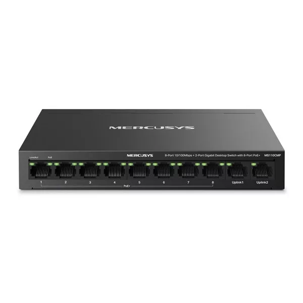 MERCUSYS Switch 8x100Mbps(8xPOE+) + 2xLAN(1000Mbps), Fémházas Asztali/Rackes, MS110CMP