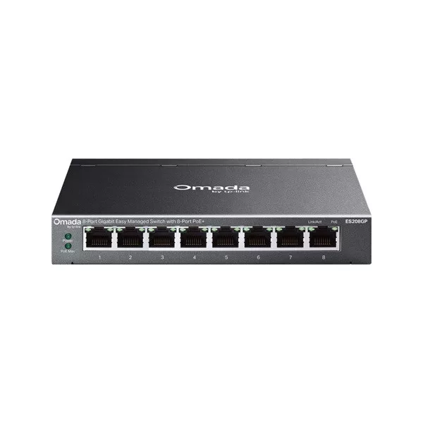 TP-LINK Switch 8x1000Mbps(8xPOE+) Fémházas Easy Smart (Omada), ES208GP
