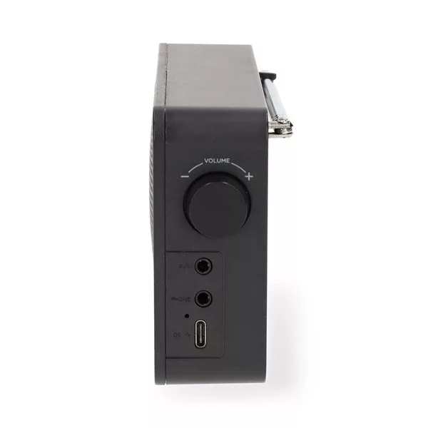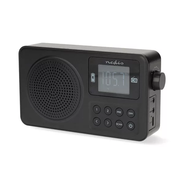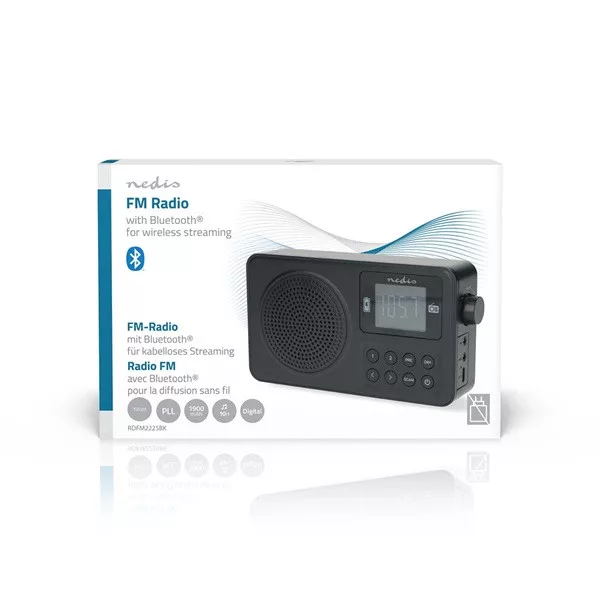 Nedis RDFM2225BK hordozható FM rádió, digitális hangolás, Bluetooth, Fejhallgató kimenet, Ébresztőóra, akkumulátor