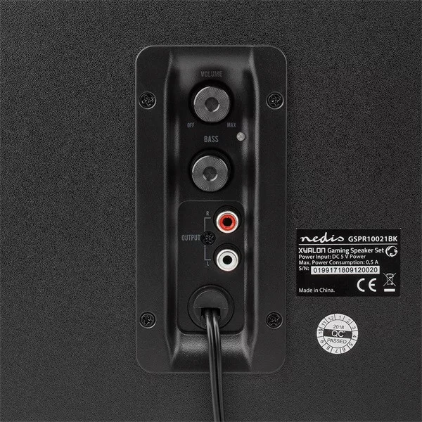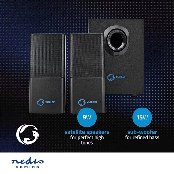 Nedis GSPR10021BK aktív gamer hangszóró 2.1, USB tápellátás, 3,5 mm jack, 30 W, Hangerőszabályozó