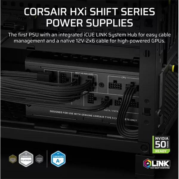 CORSAIR Tápegység Moduláris, iCUE LINK HXi SHIFT Series, HX1000i SHIFT, 1000 Watt, Cybenetics Platinum