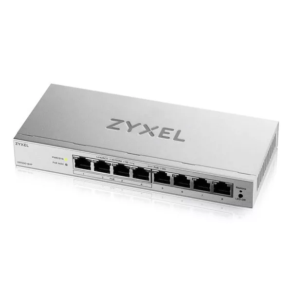 ZYXEL Switch 8x1000Mbps (4xPOE+), Fémházas Asztali, GS1200-8HPV3-EU0101F