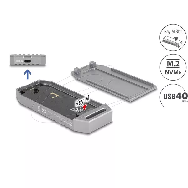 DELOCK Külső Ház M.2 NVMe SSD USB4 40 Gbps, tool free