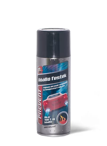 A PREVENT hőálló festékkel kipufogódobok, motorok és egyéb magas hőnek kitett, acélfelületek fújhatók le. A fekete festék saválló és hőálló acélfelületen 700°C-ig, az ezüst festék 650°C-ig hőálló. Legalább 20 perces, 150°C-on történő hőkezelés (pl. a motor járatása) után kiváló tapadású, kemény, de rugalmas bevonatot kapunk.