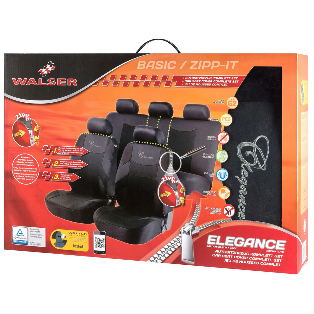 Az Elegance üléshuzatok tartós anyagból készülnek, gyorsan és egyszerűen felszerelhetők. Először vedd le a fejtámlát, majd húzd az ülés- és háttámla részeket az autósülésre. Ezután rögzítsd mindkét részt egy kampóval az ülés alatt, és nyomd meg a fület középen a háttámla és az ülőrész között. Végül az integrált ZIPP-It rögzítőrendszernek köszönhetően a fejtámla könnyen visszahelyezhető és lefedhető a fejtámla huzattal.