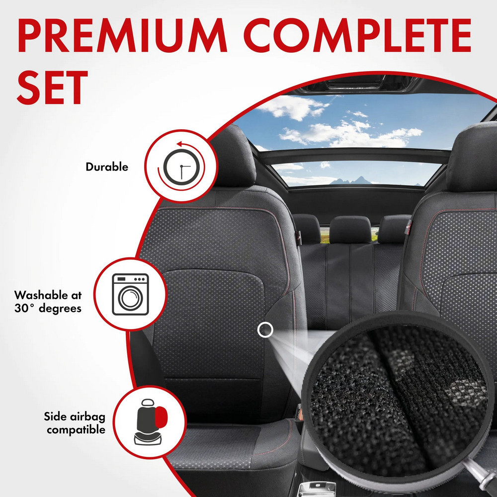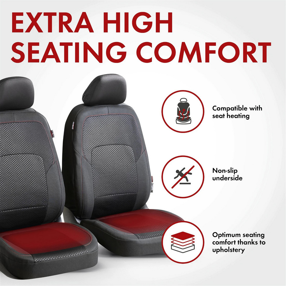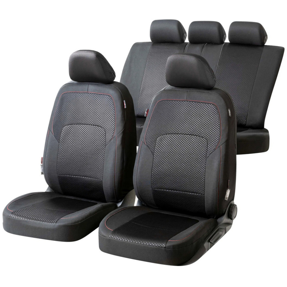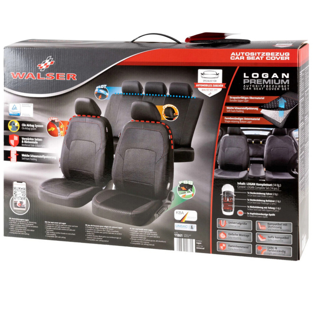 A Logan fekete, piros varrással díszített üléshuzatok tartós anyagból készülnek, gyorsan és egyszerűen felszerelhetők. Először vedd le a fejtámlát, majd húzd az ülés- és háttámla részeket az autósülésre. Ezután rögzítsd mindkét részt egy kampóval az ülés alatt, és nyomd meg a fület középen a háttámla és az ülőrész között. Végül az integrált ZIPP-It rögzítőrendszernek köszönhetően a fejtámla könnyen visszahelyezhető és lefedhető a fejtámla huzattal.