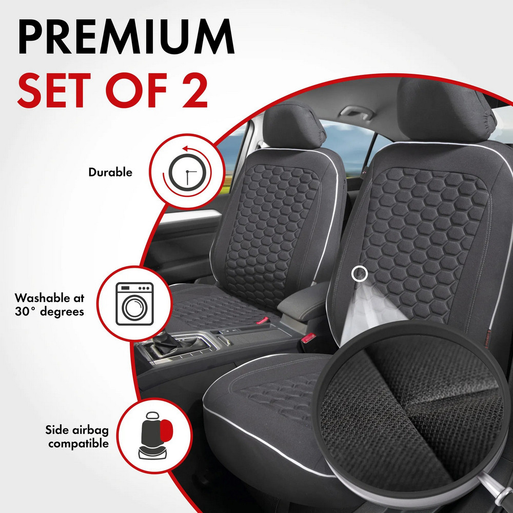 - 2 db, 2 részes első üléshuzat, 2 fejtámlahuzat