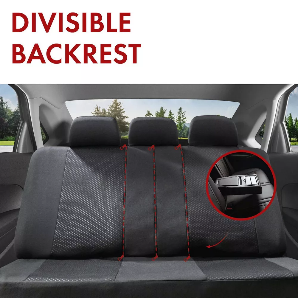 A hátsó üléstámla huzata zippzárral osztható, így akár a beépített könyöklő használatáról sem kell lemondani!