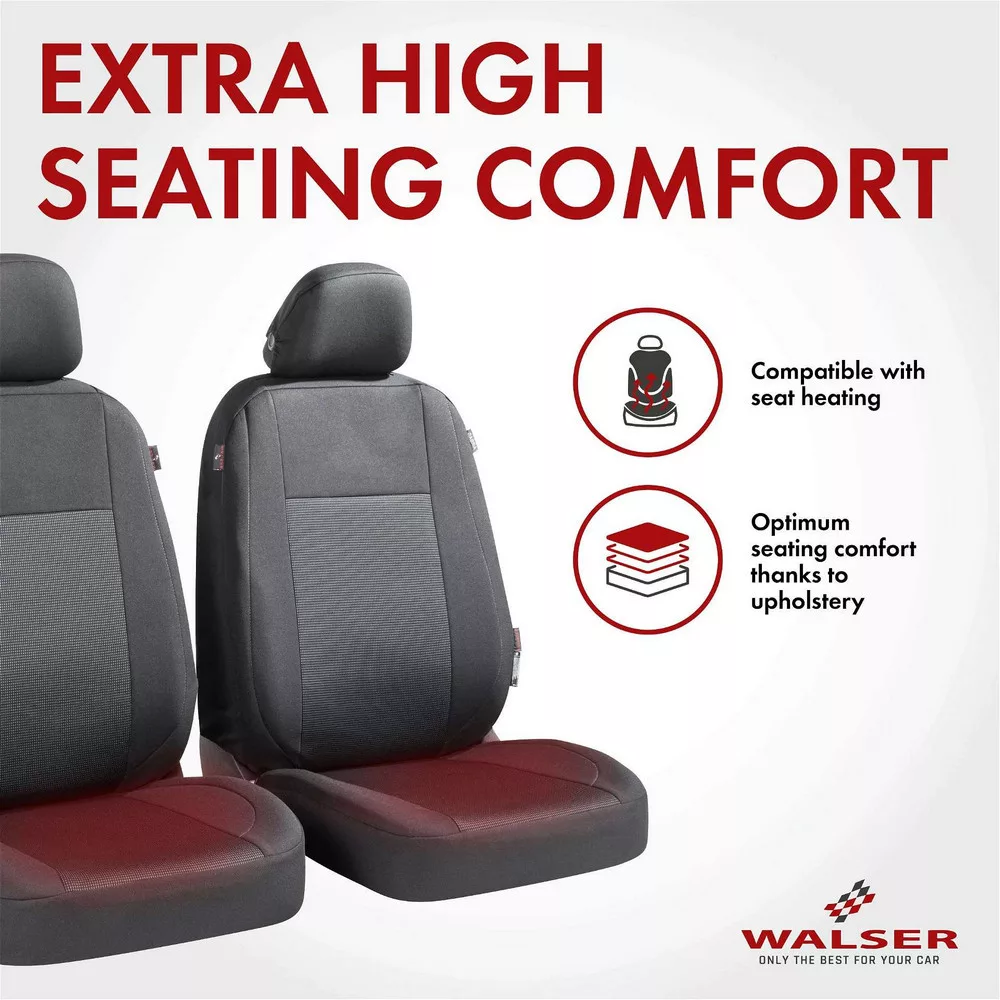 Az első üléshuzatok teljesen fedik az ülés háttámláját is, tépőzárral rögzíthetők.