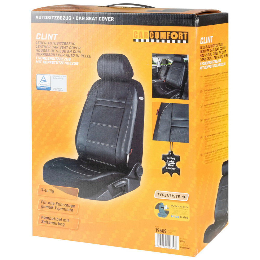Mostantól autója belseje lesz az új szemet gyönyörködtető, mivel teljes egészében valódi bőrből készült termékünkkel azonnal modern és elegáns stílust kölcsönözhet autójának. A Clint modell kiváló minőségű, hasított borjúbőrből készült, és optimálisan védi az eredeti ülést a szennyeződéstől és a kopástól. Az üléshuzat mind a vezető-, mind az első utasülésen használható. Ezenkívül az autósüléshuzat Clix III tanúsítvánnyal rendelkezik. Ez azt jelenti, hogy minden beépített oldallégzsákkal rendelkező járműhöz alkalmas, így a legmagasabb szintű biztonságot nyújtja Önnek és utasainak. Ez életeket menthet vészhelyzetben, biztonságérzetet ad rövid és hosszú utakon is.