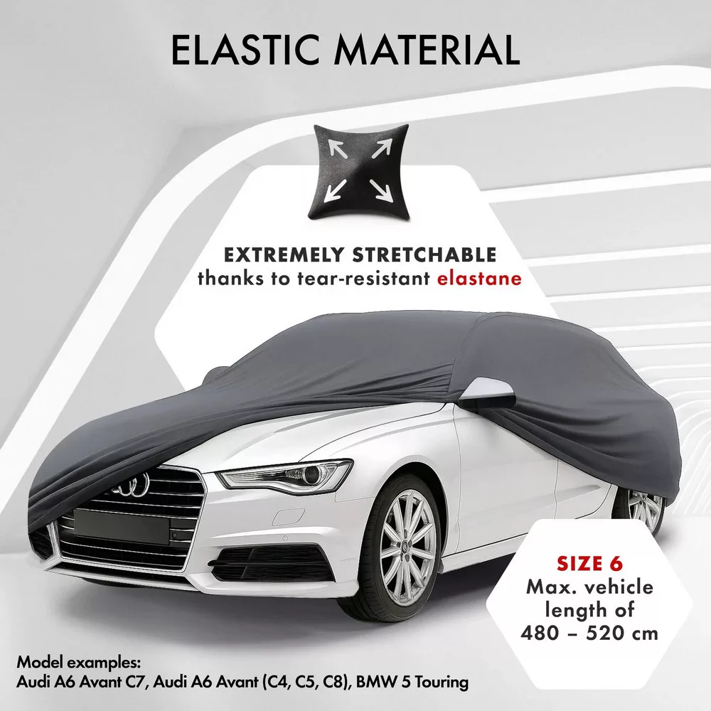 Az Indoor Stretch Plus autóhuzat gyengéd, puha anyagból készült, amely ideális beltéri használatra.