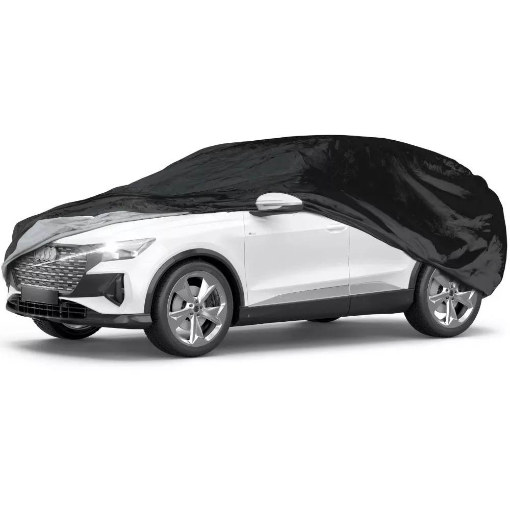 A ponyva 120 g/m²-es PEVA bevonatú, nem szőtt anyagból készült, ami vízállóvá teszi – nagy előny kültéri használatra. Ez megvédi járművét az esőtől, jégtől, hótól és egyéb szennyeződésektől, például portól, madárürüléktől, fagyantától és levelektől.