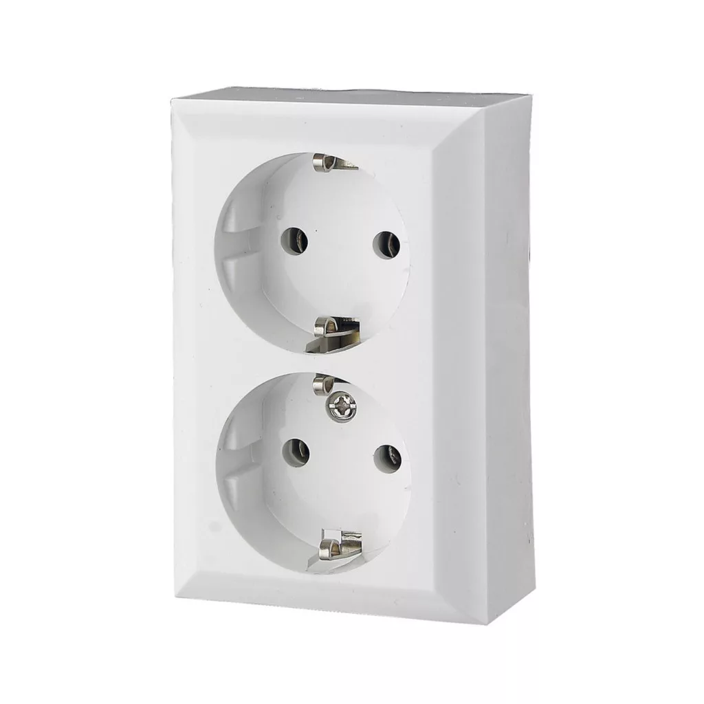 Ez a falon kívüli kivitelű aljzat könnyen telepíthető, és nem igényel süllyesztést, így gyorsan üzembe helyezhető. A földelt aljzat névleges feszültsége 230 V~ / 50 Hz, névleges áramerőssége pedig 16 A, ami biztosítja az optimális teljesítményt és biztonságot. A két férőhelyes kialakítás lehetővé teszi, hogy egyszerre több készüléket csatlakoztasson, így helytakarékos és praktikus megoldást kínál.