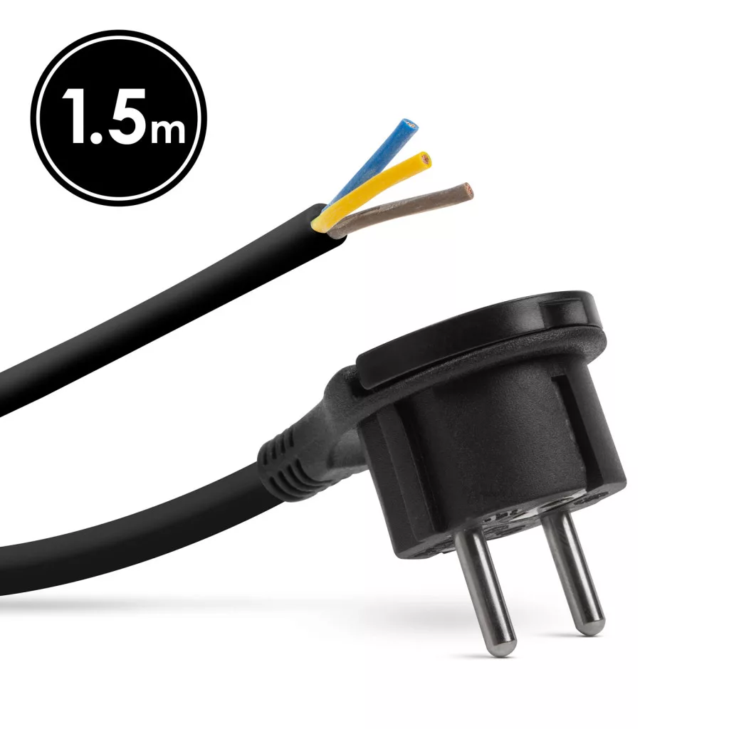 Hálózati szerelhető tápkábel dugóval - műanyag füllel - 1,5 m kábellel - 3 x 1,5 mm2 - fekete