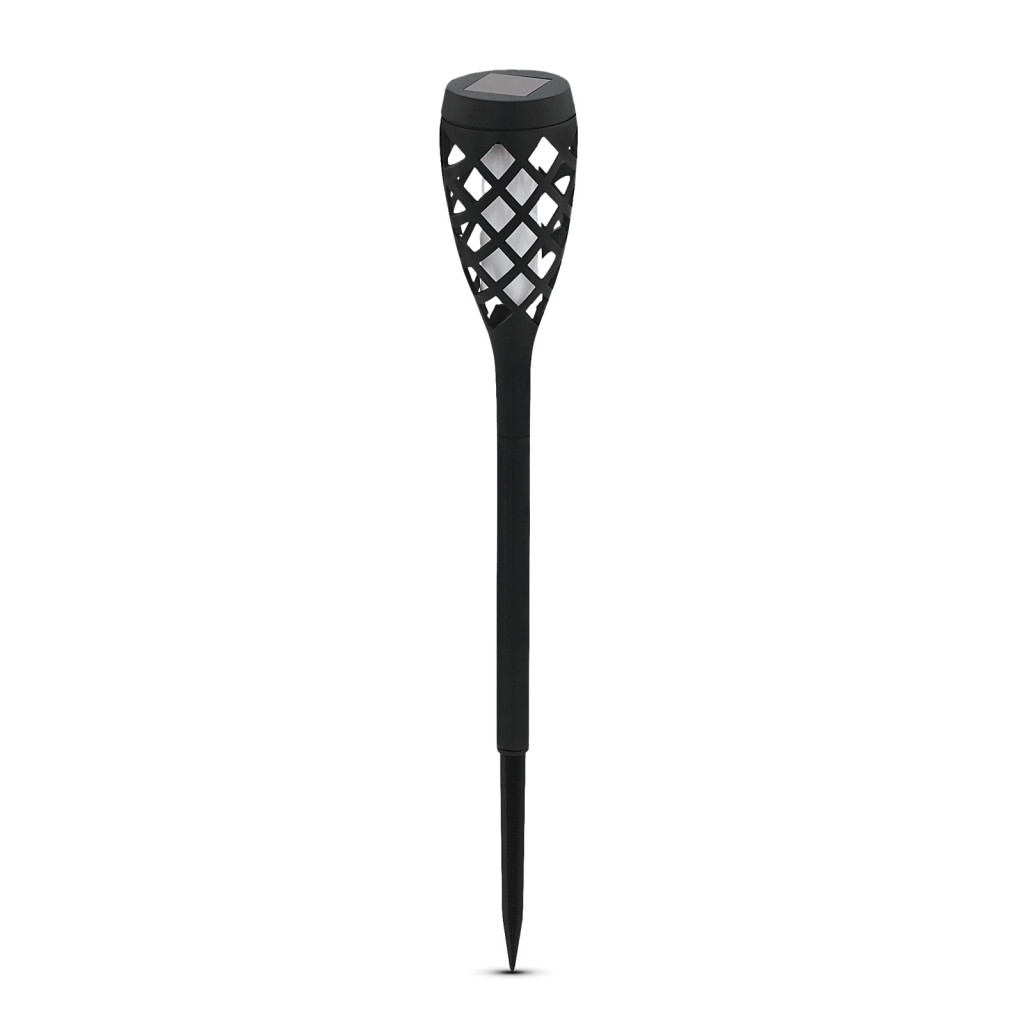 LED-es szolár lámpa - leszúrható - lángeffekt - 12 sárga LED - műanyag - fekete - 60 x 420 mm